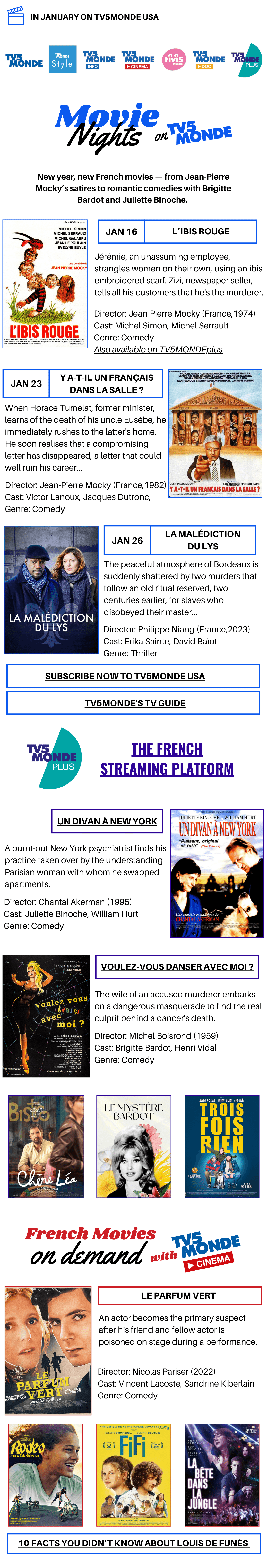 New year, new French movies — from Jean-Pierre Mocky’s satires to romantic comedies with Brigitte Bardot and Juliette Binoche.